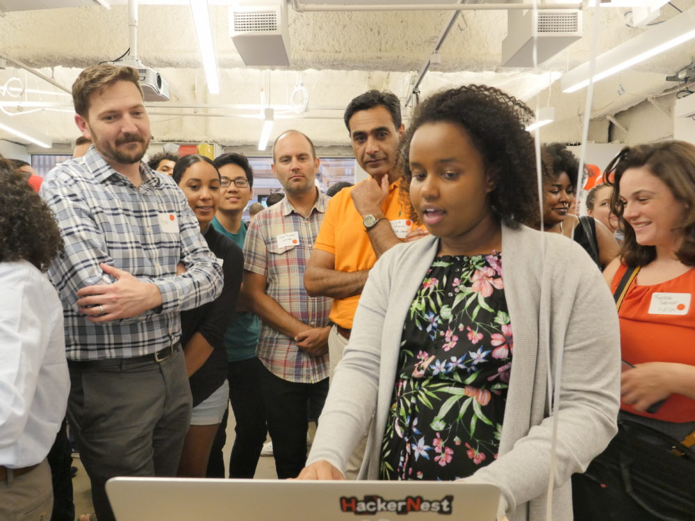 We don’t test. Instead, we have applicants come in for a whole day and we explain the program to them. We challenge them to solve a problem with technology. We have them think about the issues in their communities and then choose a few topics – financial literacy, mental health, housing, to name a few that often come up – and ask them to build a product to help solve that challenge. After a quick overview of HTML and CSS, groups of four to five start building a technological solution.