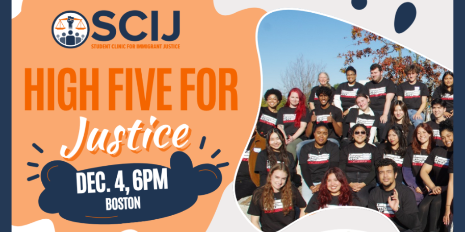 Student Clinic for Immigrant Justice is celebrating five years of building immigrant justice and invites the community to their annual Fundraiser & Community Event on Thursday, December 4, 6–8 pm in Boston (location to be announced).